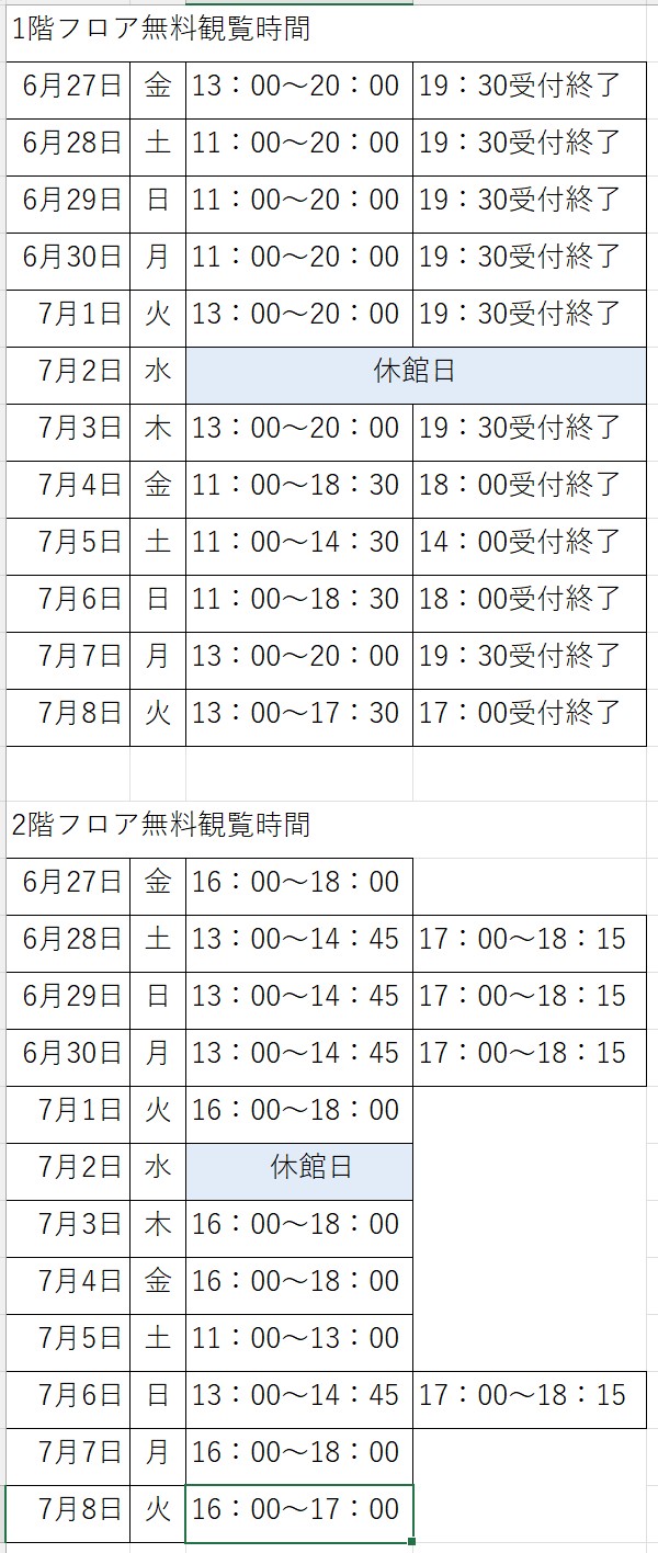 ★期間:2025年6月27日~7月8日(7月2日休館)